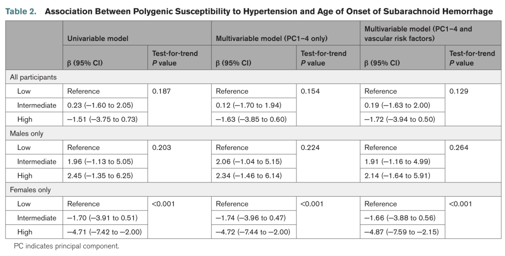 结论:高血压的多基因易感性与女性非外伤性SAH的早期发病有关。